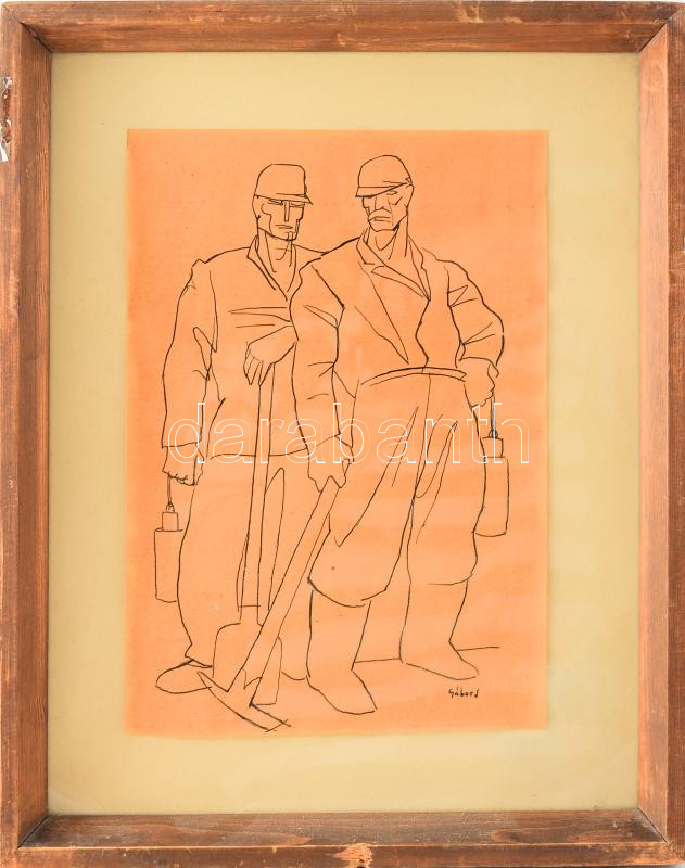Gábor Jenő (1893-1968): Bányászok. Tus, papír. Jelzett. Üvegezett fake... https://www.darabanth.com/de/503-Fernauktion/503.0/Gemalde-und-Grafiken/Gemalde-und-Grafiken~2000001/Gabor-Jeno-1893-1968-Banyaszok-Tus-papir-Jelzett-Uvegezett-fakeretben-27x19-cm~II3402771