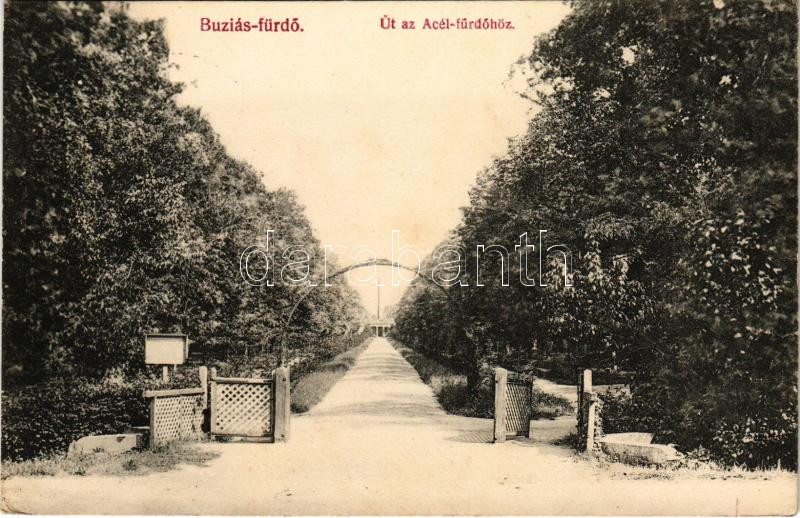 1907 Buziás-fürdő, Baile Buzias; út az Acél fürdőhöz. Francz testvérek... https://www.darabanth.com/de/504-Fernauktion/504.0/Ansichtskarten/Siebenburgen~2000002/1907-Buzias-furdo-Baile-Buzias-ut-az-Acel-furdohoz-Francz-testverek-kiadasa-street-to~II3406039