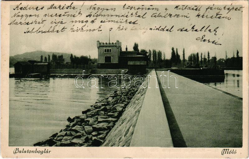 1930 Balatonboglár, móló (fl) https://www.darabanth.com/de/504-Fernauktion/504.0/Ansichtskarten/Ungarn~2000001/1930-Balatonboglar-molo-fl~II3207632