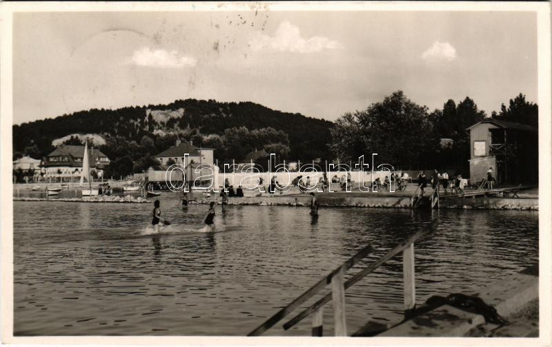 Beschreibung: 1939 Balatonalmádi, Strandfürdő, fürdőzők (fl)