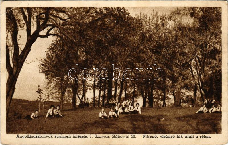1942 Budapest XII. Zugliget, Angolkisasszonyok intézete. Pihenő, virág... https://www.darabanth.com/de/504-Fernauktion/504.0/Ansichtskarten/Ungarn~2000001/1942-Budapest-XII-Zugliget-Angolkisasszonyok-intezete-Piheno-viragzo-fak-alatt-a-reten-Sz~II3360499