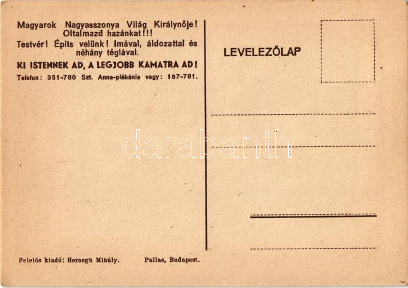 Budapest XII. Normafa közelében épülő Világkirálynéja kápolna, a magya... https://www.darabanth.com/de/504-Fernauktion/504.0/Ansichtskarten/Ungarn~2000001/Budapest-XII-Normafa-kozeleben-epulo-Vilagkiralyneja-kapolna-a-magyar-hosok-emlekszent~II3210501
