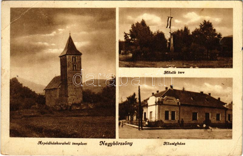 Nagybörzsöny, Árpád-ház korabeli templom, Hősök tere, Országzászló, hő... https://www.darabanth.com/de/504-Fernauktion/504.0/Ansichtskarten/Ungarn~2000001/Nagyborzsony-Arpad-haz-korabeli-templom-Hosok-tere-Orszagzaszlo-hosi-emlekmu-Kozs~II3420917