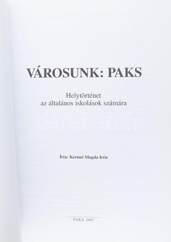 Kernné Magda Irén: Városunk: Paks. Helytörténet általános iskolásoknak... https://www.darabanth.com/de/504-Fernauktion/504.0/Bucher/Bucher-Reise-und-Ortgeschichte~2500021/Kernne-Magda-Iren-Varosunk-Paks-Helytortenet-altalanos-iskolasoknak-Paks-1997-112p--~II3423593