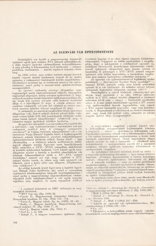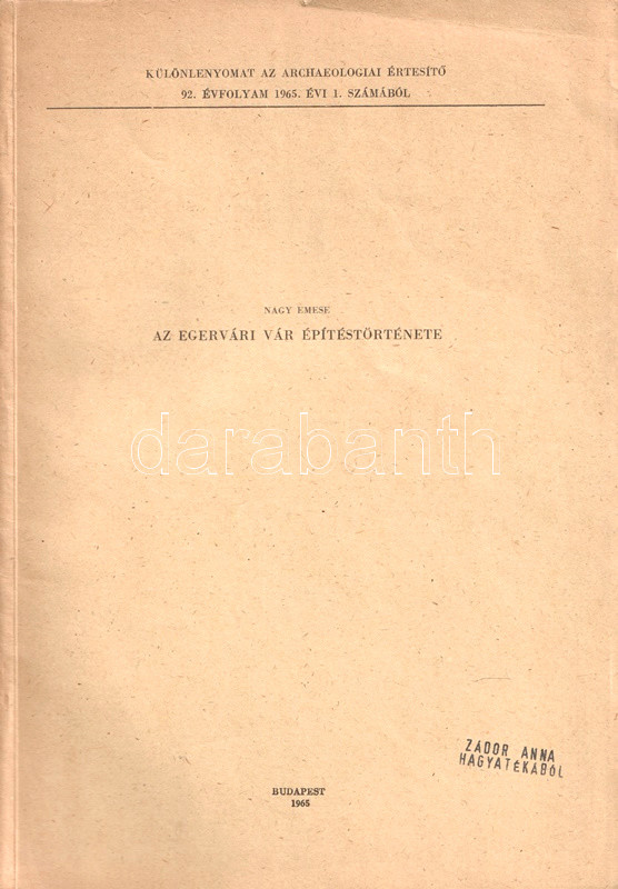 Felvételekkel, homlokzat- és alaprajzokkal gazdagon díszített tanulmányában Nagy Emese műemlékvédő Zala megye erősségének, a XVI. században kibővített, a Nádasdyak által igazgatott egervári várnak építéstörténeti és rekonstrukciós történetébe avat be. Az első borítófedélen hagyatéki bélyegzés, "Zádor Anna hagyatékából" felirattal.