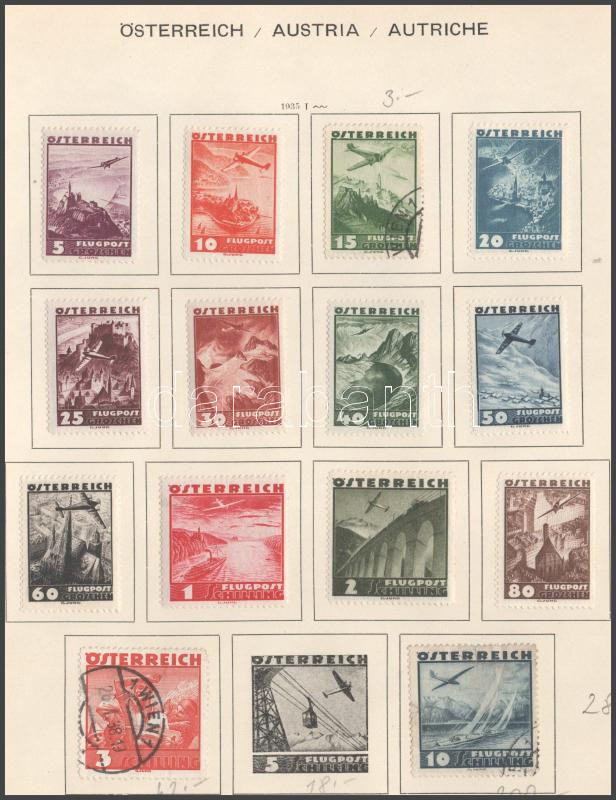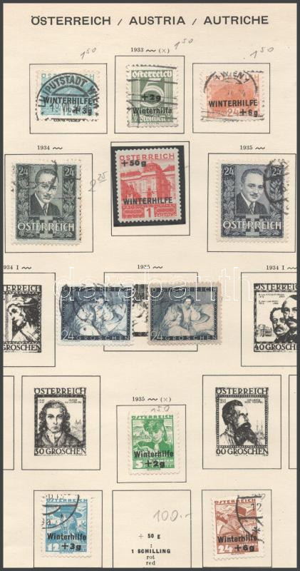 Beschreibung: Ausztria 1934-1936 48 db klf bélyeg 4 db előnyomott albumlapon