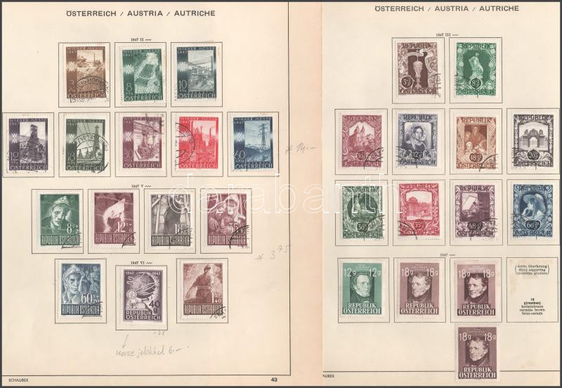 Beschreibung: Ausztria 1945-1947 10 kiadás, összesen 105 db klf bélyeg 7 db előnyomott albumlapon