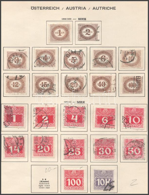 Ausztria portó 1899-1951 20 db kiadás, közte hiányosak, összesen 229 d... https://www.darabanth.com/de/504-Fernauktion/504.0/Erlesene-Lose-und-Sammlungen-Ausland/Sammlungen-und-Lose-Welt~500011/Ausztria-porto-1899-1951-20-db-kiadas-kozte-hianyosak-osszesen-229-db-klf-belyeg-12-db-elo~II3421324