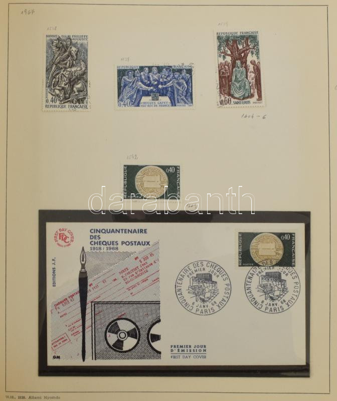 Beschreibung: Franciaország 1960-1969 Gyűjtemény, benne 20 db FDC is, részben filázva csavaros albumban