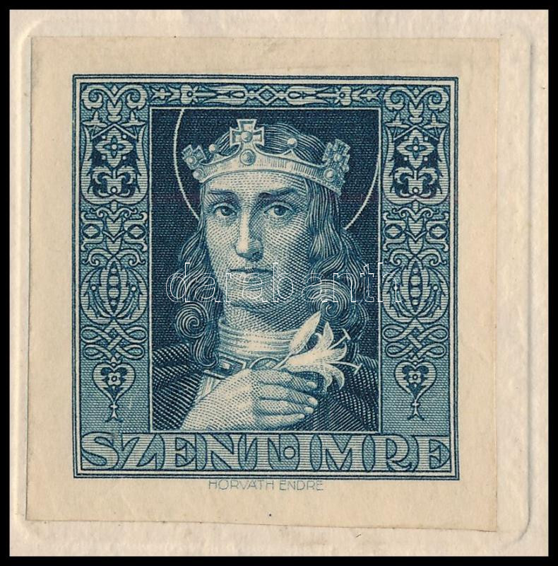 ~1930 Horváth Endre fogazatlan Szent Imre megvalósulatlan bélyegterve ... https://www.darabanth.com/de/504-Fernauktion/504.0/Erlesene-Lose-und-Sammlungen-Ungarn/Einzelne-Gebotslose-Ungarn~500001/7E1930-Horvath-Endre-fogazatlan-3Cem3ESzent-Imre3Cem3E-megvalosulatlan-belyegterve-kasirozva~II3422398