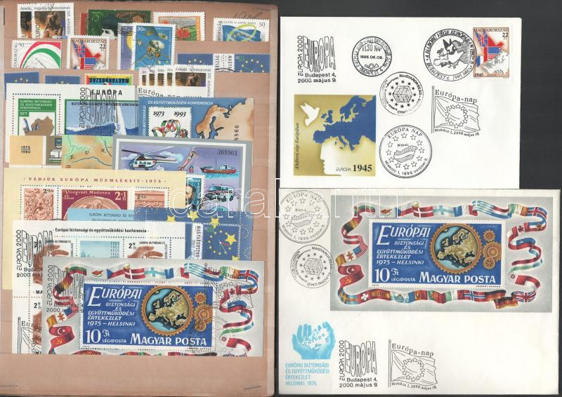 Beschreibung: Kis Európa motívum tétel, benne sorok, önálló bélyegek, díjjegyesek, alkalmi bélyegzések, Együttműködési Értekezlet blokk FDC-n