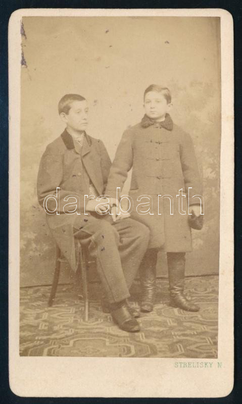 cca 1863 Két fiatal fiú portréja, vizitkártya Strelisky Náthán (1818-1... https://www.darabanth.com/de/504-Fernauktion/504.0/Fotografie/Foto~1000005/cca-1863-Ket-fiatal-fiu-portreja-vizitkartya-Strelisky-Nathan-1818-1864-pesti-mutermebol~II3419478