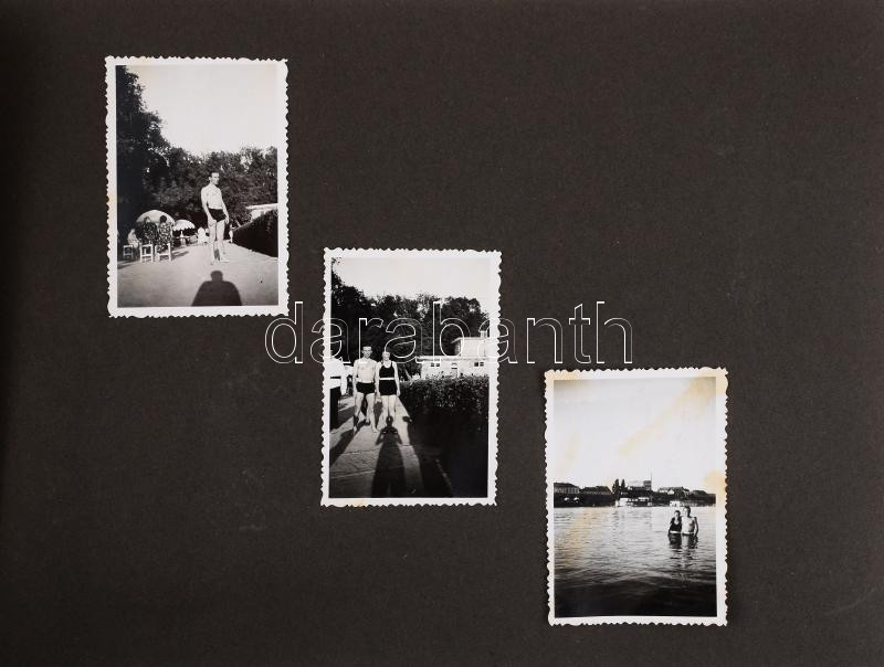 Beschreibung: cca 1940 Fényképalbum 55 db fényképpel, katonaruhás, autós, hidas stb képekkel.