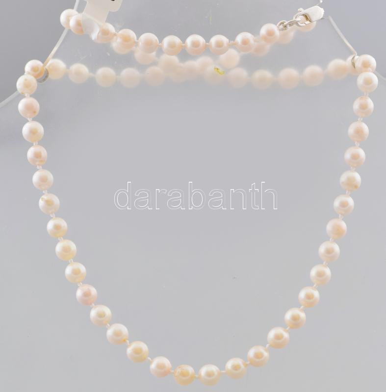 Akoya sósvizi gyöngysor nyaklánc, ezüst (Ag) kapoccsal, jelzett, h: 52... https://www.darabanth.com/de/504-Fernauktion/504.0/Juwellen-und-Kunstobjekte-aus-Edelmetall/Juwellen-und-Kunstobjekte-aus-Edelmetall~1000020/Akoya-sosvizi-gyongysor-nyaklanc-ezust-Ag-kapoccsal-jelzett-h-52-cm~II3421484