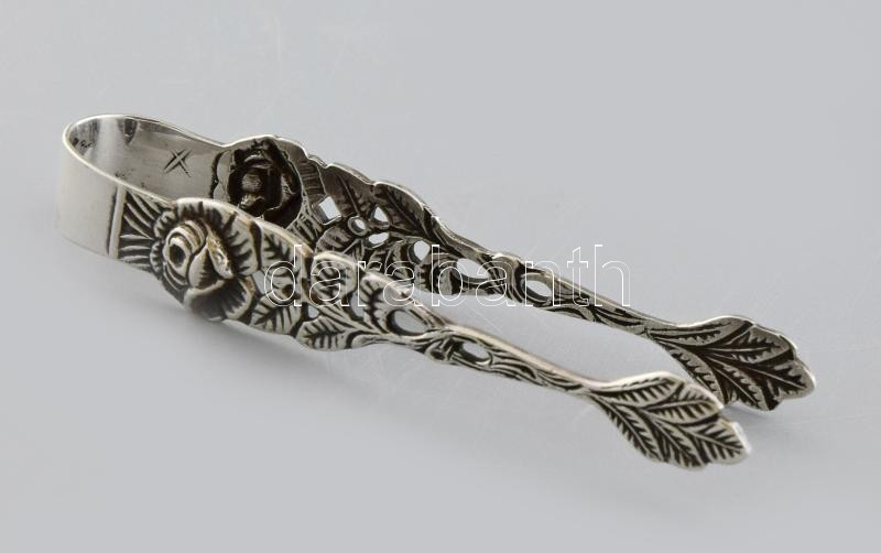 Beschreibung: Ezüst (Ag) bécsi rózsás cukorcsipesz, jelzett, h: 8 cm, nettó: 14 g
