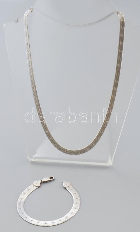 Beschreibung: Ezüst(Ag) lapos, csillagmintás kígyó nyaklánc és karkötő, jelzett, h: 18,5 és 46 cm, nettó: 22,6 g