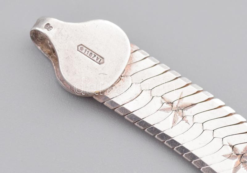 Ezüst(Ag) lapos, csillagmintás kígyó nyaklánc és karkötő, jelzett, h: ... https://www.darabanth.com/de/504-Fernauktion/504.0/Juwellen-und-Kunstobjekte-aus-Edelmetall/Juwellen-und-Kunstobjekte-aus-Edelmetall~1000020/EzustAg-lapos-csillagmintas-kigyo-nyaklanc-es-karkoto-jelzett-h-18-5-es-46-cm-netto~II3423915