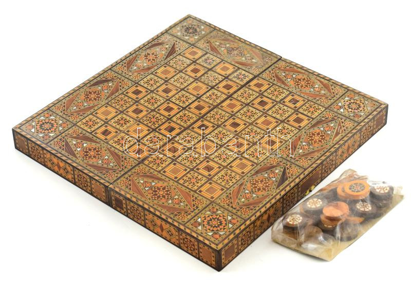 Gazdag intarziás keleti sakk és ostábla, gyöngyház részekkel, kopással... https://www.darabanth.com/de/504-Fernauktion/504.0/Kunst-Dokumente-andere-Sammelgebiete/Antik~5/Gazdag-intarzias-keleti-sakk-es-ostabla-gyongyhaz-reszekkel-kopassal-40x40-cm~II3423537