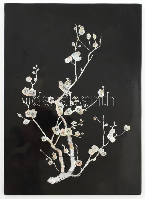 Beschreibung: Japán gyöngyház berakásos kép falidísz, jelzés nélkül, szép állapotban, kopással, 35x25 cm