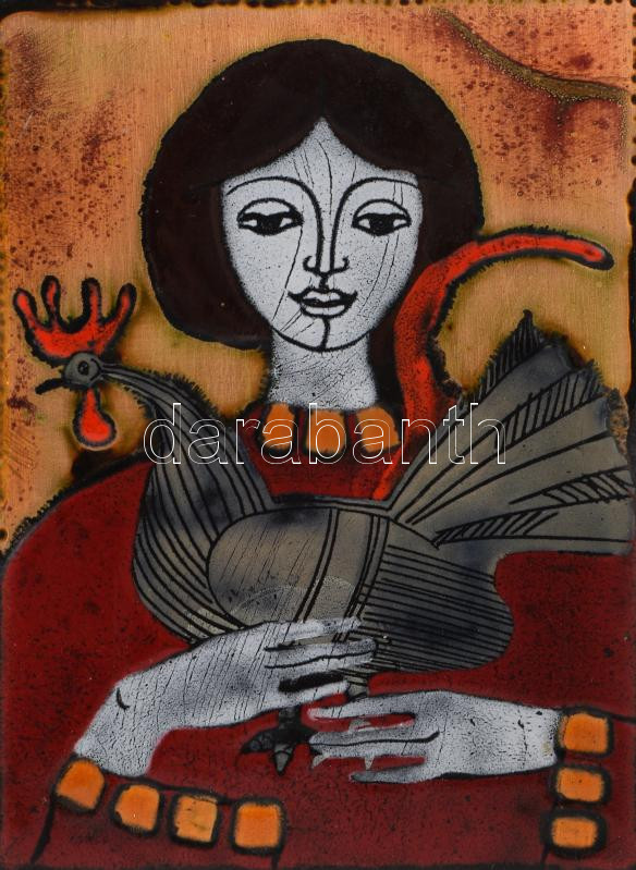 Lőrincz Vitus (1933-): Nő kakassal. Tűzzománc, jelzés nélkül, keretbe ... https://www.darabanth.com/de/504-Fernauktion/504.0/Kunst-Dokumente-andere-Sammelgebiete/Antik~5/Lorincz-Vitus-1933-No-kakassal-Tuzzomanc-jelzes-nelkul-keretbe-applikalva-14x10-cm~II3420955
