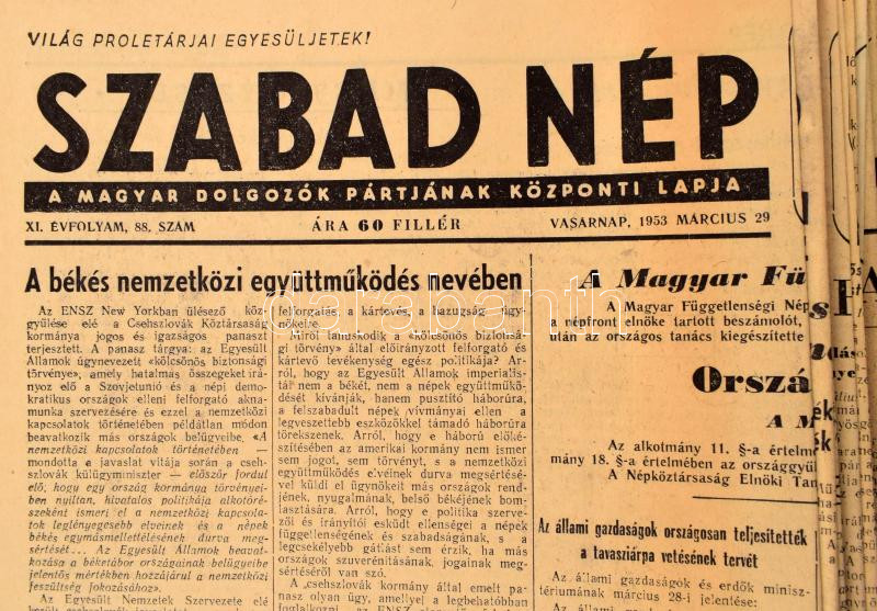 1953-56 Szabad Nép 40 db száma, jó állapotban https://www.darabanth.com/de/504-Fernauktion/504.0/Kunst-Dokumente-andere-Sammelgebiete/Drucksachen~1000017/1953-56-Szabad-Nep-40-db-szama-jo-allapotban~II3409040