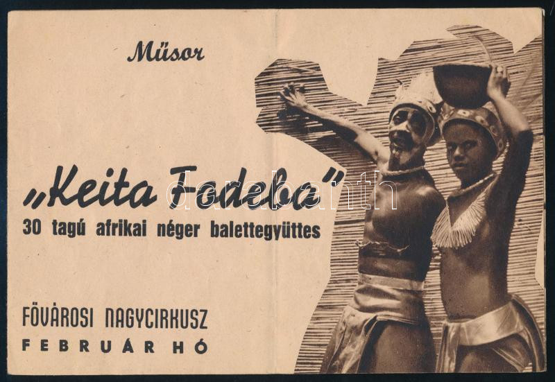 cca 1946 "Keita Fodeba" 30 tagú afrikai néger balettegyüttes... https://www.darabanth.com/de/504-Fernauktion/504.0/Kunst-Dokumente-andere-Sammelgebiete/Drucksachen~1000017/cca-1946-Keita-Fodeba-30-tagu-afrikai-neger-balettegyuttes-fellepese-a-Fovarosi-Nagycirkusz~II3423773
