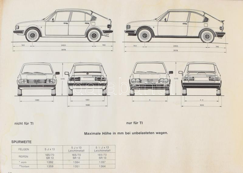 cca 1970 Alfa Romeo Alfasud német nyelvű szervizkönyv, ázott https://www.darabanth.com/de/504-Fernauktion/504.0/Kunst-Dokumente-andere-Sammelgebiete/Drucksachen~1000017/cca-1970-Alfa-Romeo-Alfasud-nemet-nyelvu-szervizkonyv-azott~II3422700