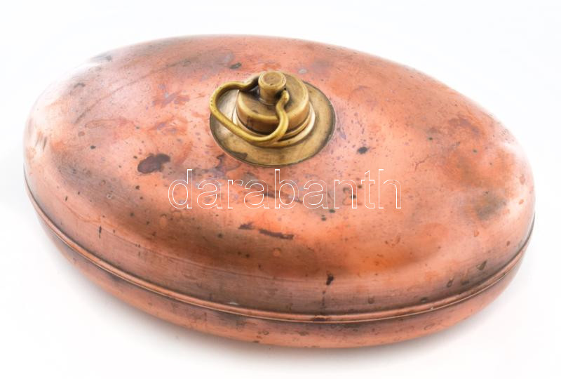Antik réz ágymelegítő, kis kopással, ütődéssel, 27x18 cm https://www.darabanth.com/de/504-Fernauktion/504.0/Kunst-Dokumente-andere-Sammelgebiete/Flohmarkt~11/Antik-rez-agymelegito-kis-kopassal-utodessel-27x18-cm~II3424104