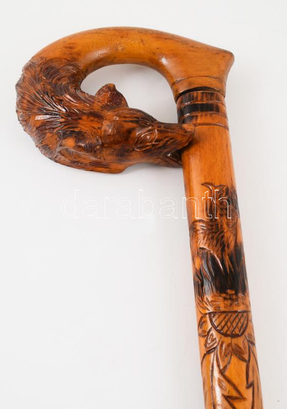 Farkasfejes sétabot. Faragott fa, lakkozott 95 cm https://www.darabanth.com/de/504-Fernauktion/504.0/Kunst-Dokumente-andere-Sammelgebiete/Flohmarkt~11/Farkasfejes-setabot-Faragott-fa-lakkozott-95-cm~II3420978
