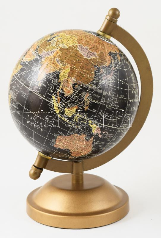 Beschreibung: Földgömb fém tartón, m: 21 cm