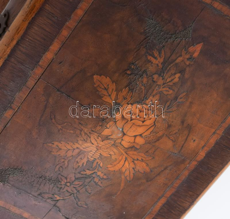 Beschreibung: Intarzia berakásos díszdoboz, benne tükörrel, kopott, kulcs nélkül, 30x21x14 cm