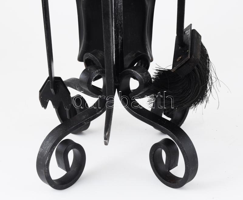 Beschreibung: Kovácsolt vas kandalló szerszám szett, jó állapotban, tartón, m: 78 cm
