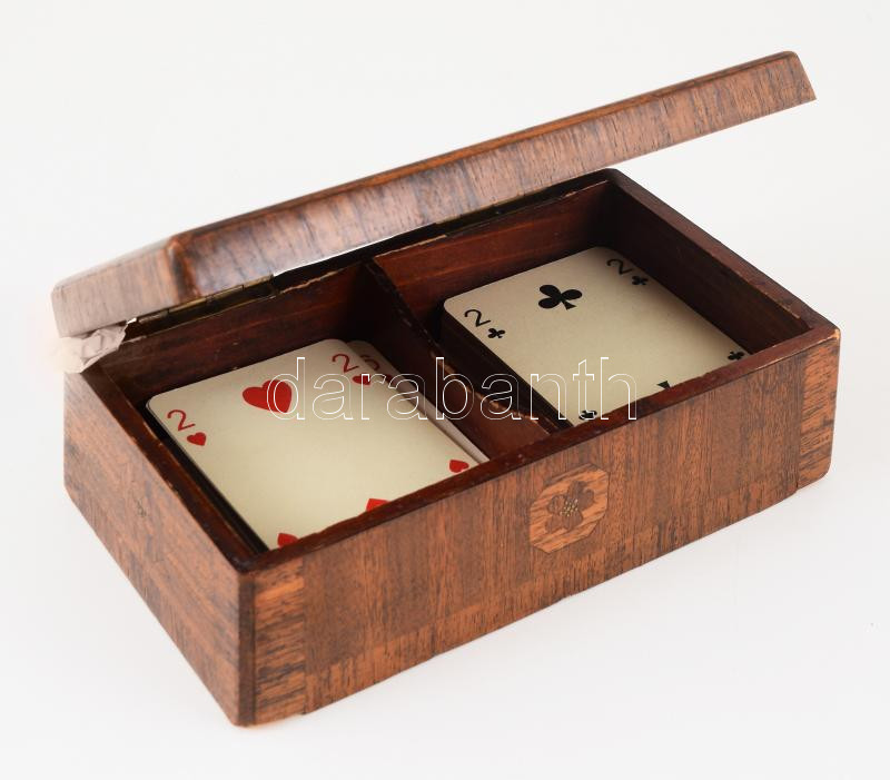 Régi intarziás kártyatartó doboz, 2 pakli francia kártyával. https://www.darabanth.com/de/504-Fernauktion/504.0/Kunst-Dokumente-andere-Sammelgebiete/Flohmarkt~11/Regi-intarzias-kartyatarto-doboz-2-pakli-francia-kartyaval~II3421509