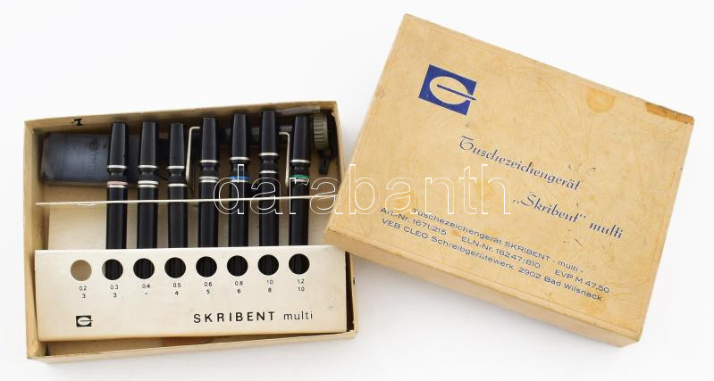 Skribent Multi rapidograph készlet, dobozában. https://www.darabanth.com/de/504-Fernauktion/504.0/Kunst-Dokumente-andere-Sammelgebiete/Flohmarkt~11/Skribent-Multi-rapidograph-keszlet-dobozaban~II3422843