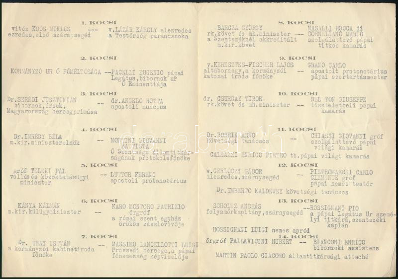 1938 Kocsirend Eugenio Pacelli (XII. Pius pápa) bíboros budapesti láto... https://www.darabanth.com/de/504-Fernauktion/504.0/Kunst-Dokumente-andere-Sammelgebiete/Historische-Dokumenten-Handschriften~1000003/1938-Kocsirend-Eugenio-Pacelli-XII-Pius-papa-biboros-budapesti-latogatasa-alkalmabol-2-db~II3424854