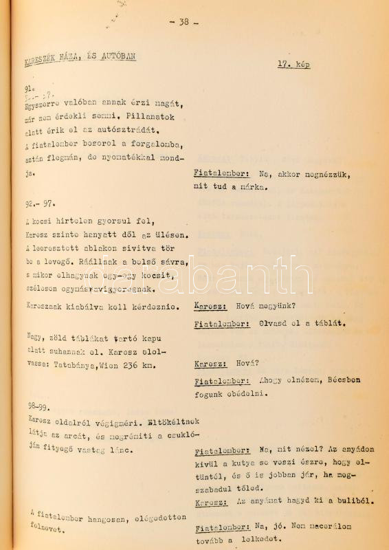 1976 Horizont - technikai forgatókönyv, írta: Marosi Gyula, Gábor Pál, MAFILM IV. Játékfilmstúdió, 80p