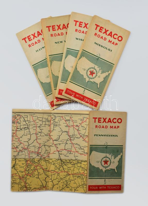 Beschreibung: cca 1934 Texaco road map - Pennsylvania, Missouri, Illinois, Wisconsin, New York, 5 db