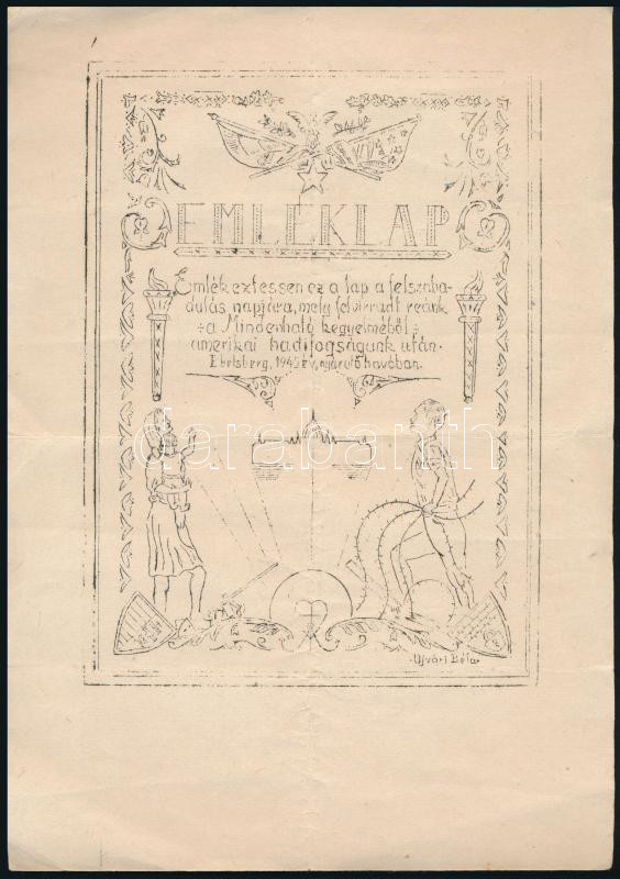 1945 Ebelsberg, emléklap amerikai hadifogságból való szabadulás emléké... https://www.darabanth.com/de/504-Fernauktion/504.0/Kunst-Dokumente-andere-Sammelgebiete/Militaria~1000014/1945-Ebelsberg-emleklap-amerikai-hadifogsagbol-valo-szabadulas-emlekere~II3424823