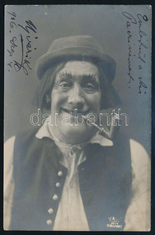 Beschreibung: 1916 Újváry Károly (színművész, 1856?1918) autográf aláírással ellátott fotólapja