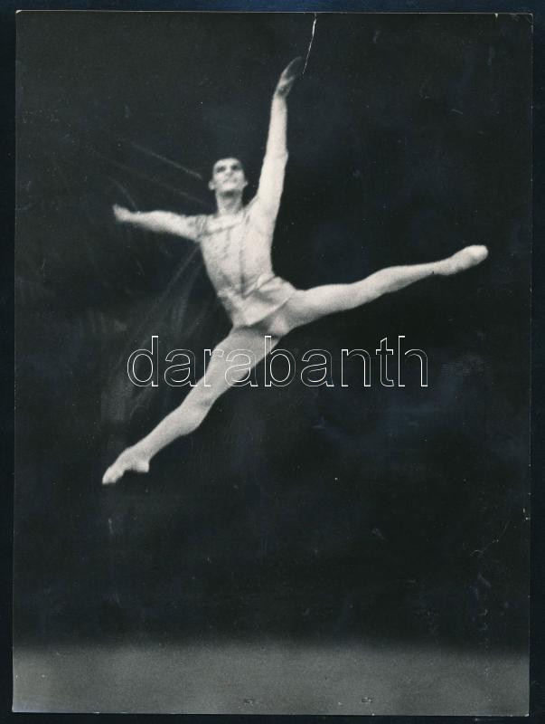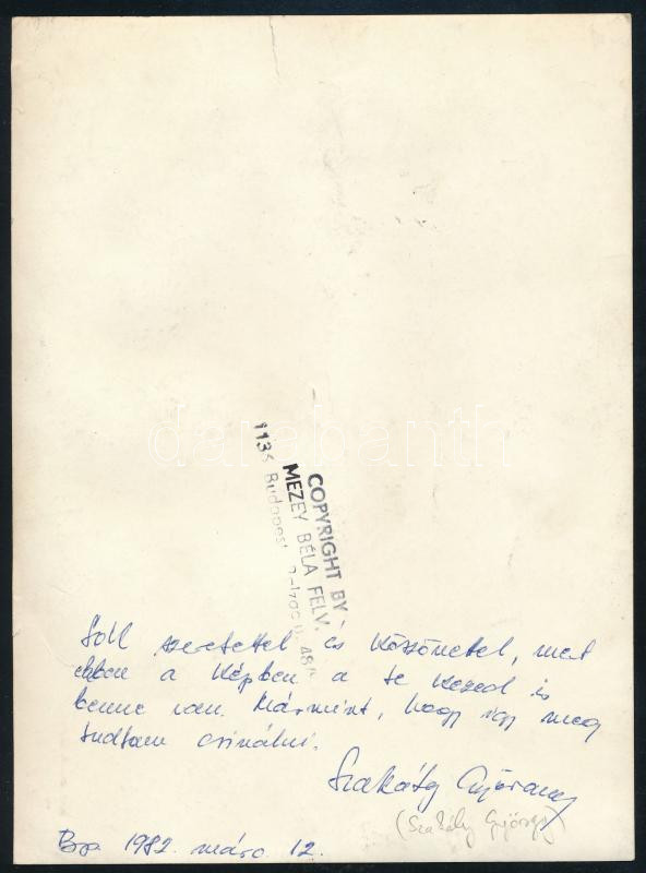 1982 Szakály György (1955-2025) Kossuth- és Liszt Ferenc-díjas táncművész, balettigazgató autográf aláírása és sorai őt ábrázoló fotón, szélén kisebb szakadással, 18x13 cm