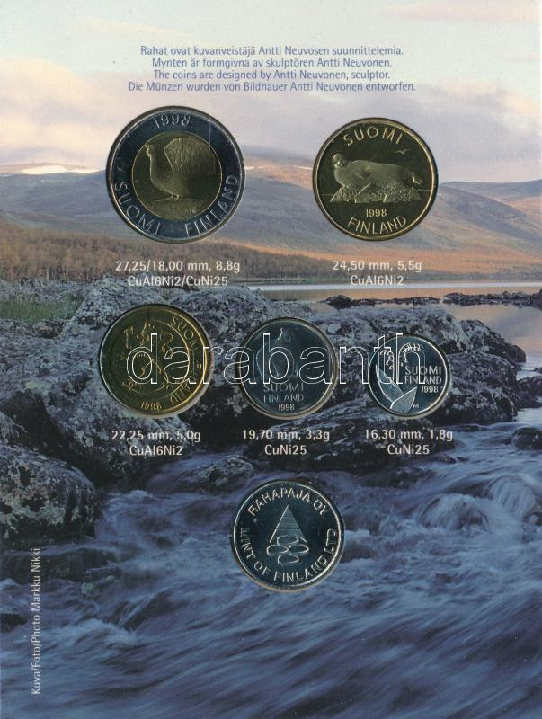 Finnország 1998. 10p - 10M (5xklf) forgalmi sor + "Finn verde / Allan Alarik Soiniemi" Cu-Ni zseton szettben, karton dísztokban T:UNC