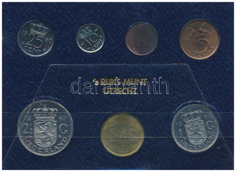 Netherlands 1980. 1 Cent "Julianna" - 2 1/2 Gulden "Julianna" (6xdiff) coin set in plastic case with mint jeton C:UNC, patina
