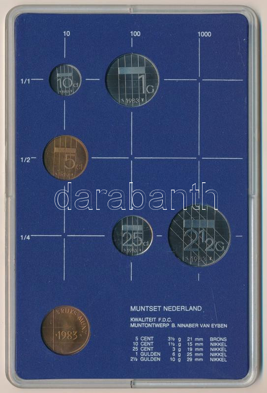 Hollandia 1983. 5c-2 1/2G (5xklf) forgalmi sor műanyag tokban, pénzver... https://www.darabanth.com/de/504-Fernauktion/504.0/Numismatik/Auslandische-Kursmunzsatze~4500063/Hollandia-1983-5c-2-12G-5xklf-forgalmi-sor-muanyag-tokban-penzverdei-zsetonnal-TUNC-Netherla~II3406154