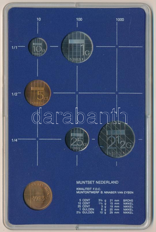 Hollandia 1983. 5c-2 1/2G (5xklf) forgalmi sor műanyag tokban, pénzver... https://www.darabanth.com/de/504-Fernauktion/504.0/Numismatik/Auslandische-Kursmunzsatze~4500063/Hollandia-1983-5c-2-12G-5xklf-forgalmi-sor-muanyag-tokban-penzverdei-zsetonnal-TUNC-Netherla~II3406156