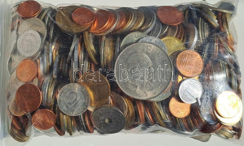 Beschreibung: Vegyes, magyar és külföldi érmetétel mintegy ~2kg súlyban T:AU,XF Mixed, Hungarian and foreign coin lot (~2kg) C:AU,XF