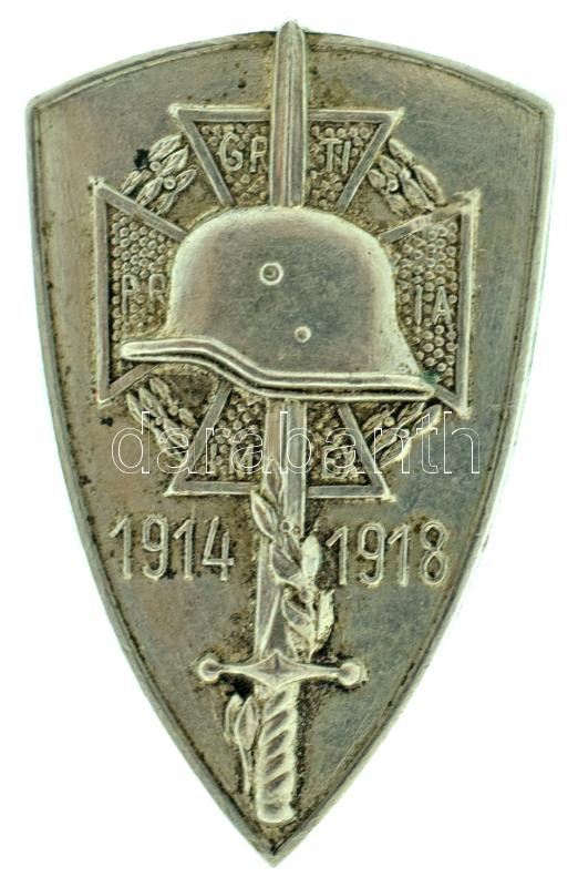 1930 k. "Országos Frontharcos Szövetség" ezüstözött bronz gomblyukjelvény, hátoldalon "BERÁN N. BPEST DÖBRENTEI U. 2." gyártói jelzésben fordított N betűkkel (17x26mm) T:AU