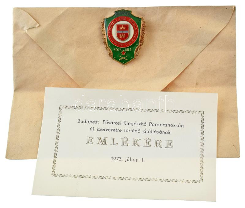 Beschreibung: 1973. "Budapest Fővárosi Kiegészítő Parancsnokság " műgyantás bronz jelvény emléklappal, (40x33mm) T:AU