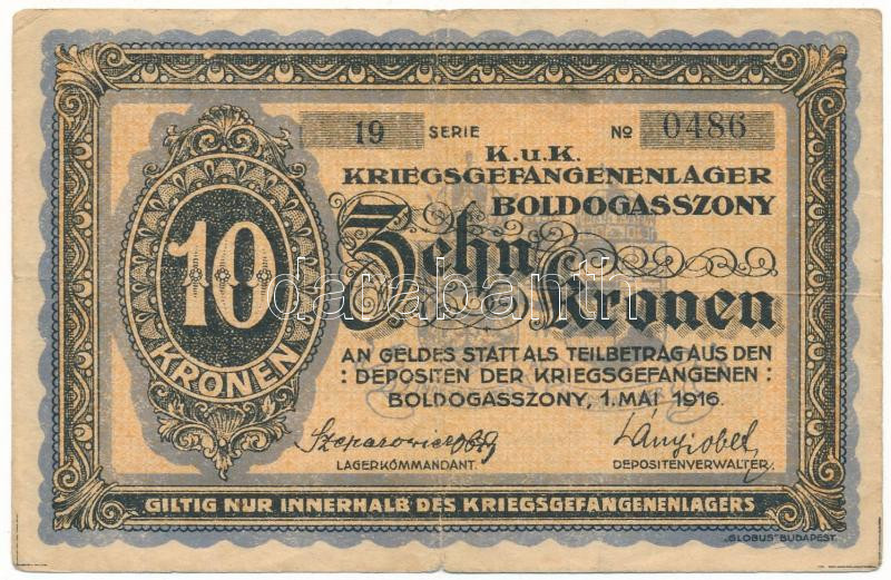 Hungary / Boldogasszony / POW camp 05.01.1916. 10 Kronen with arabic serial number "19 0486" C:F,VG