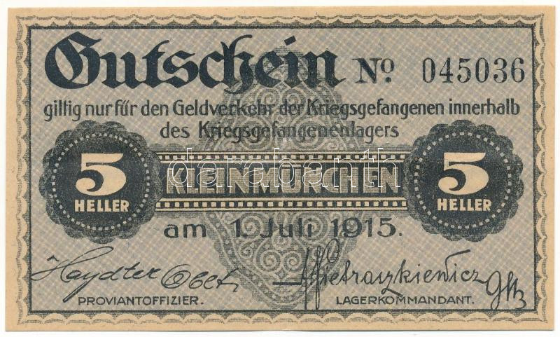 Beschreibung: Ausztria / Kleinmünchen Hadifogolytábor 1915. 5h "045036" T:XF