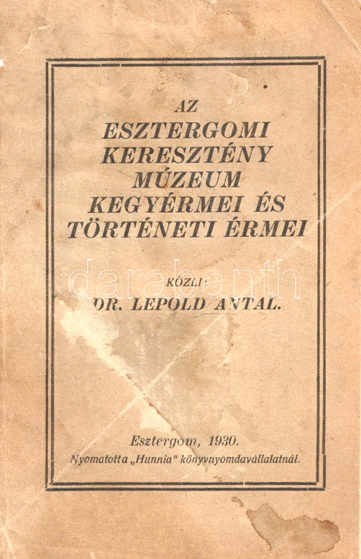 Esztergom, 1930. Hunnia Könyvnyomda Vállalat. 112 p. Egyetlen kiadás.